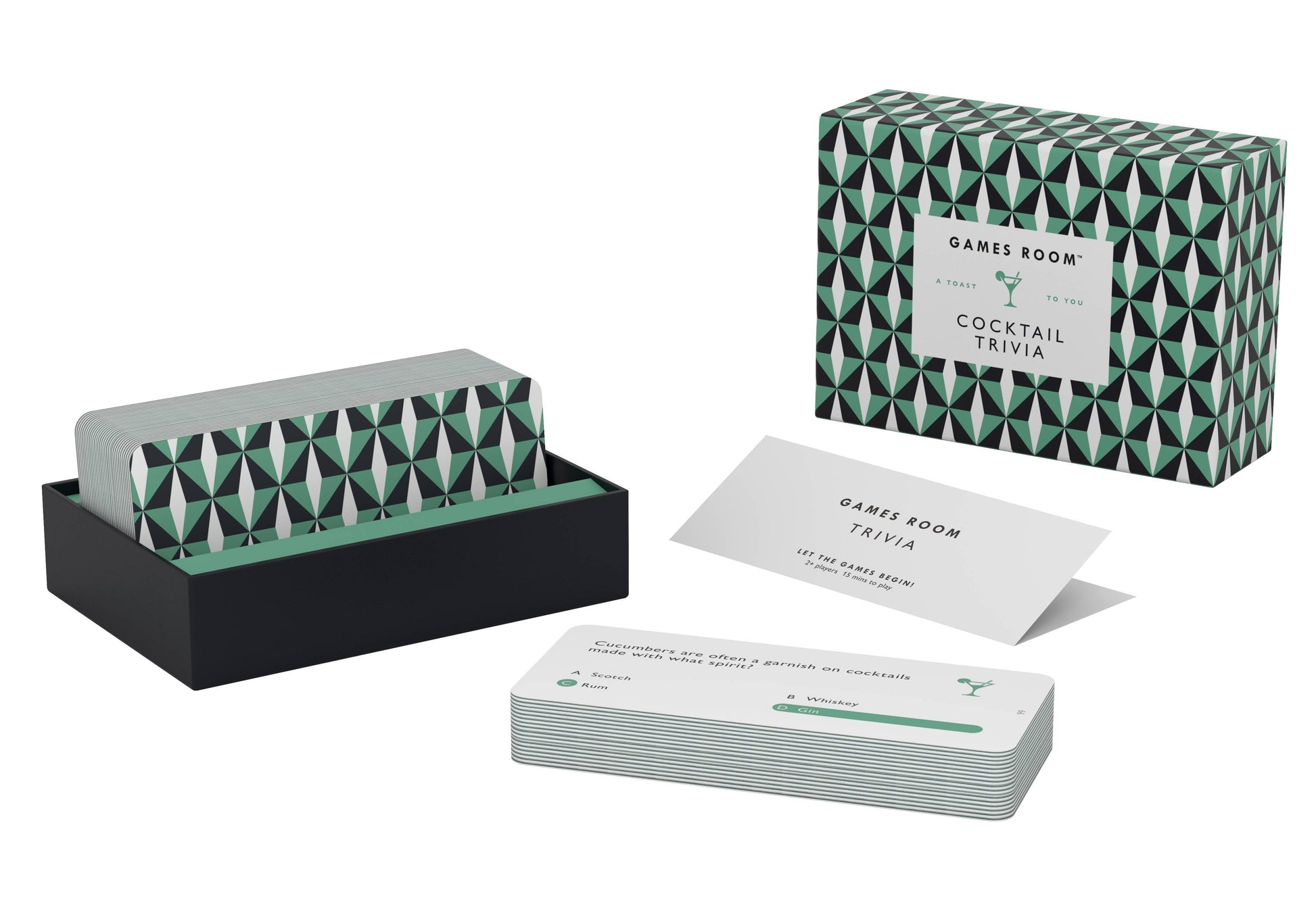 With 140 fascinating questions all about cocktails this easy-to-use deck featuring a beautiful geometric pattern is perfect for a night at the bar or a house party with friends.