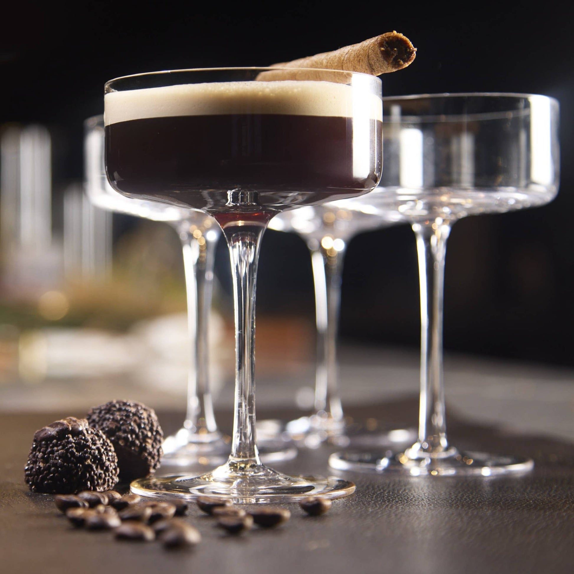 Featuring a sleek, slender silhouette with a stem, these glasses offer a refined drinking experience for espresso martinis, classic cocktails, or any mixed beverages. Their elegant shape ensures an upscale presentation, ideal for parties, toasts, or stylish evenings.