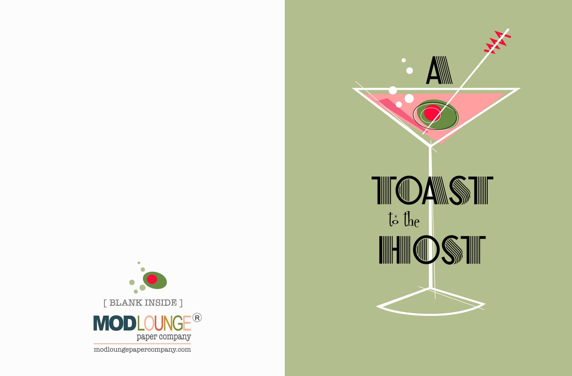 A Toast to the Host Mid Century Modern Martini & Olive Card - Mod Lounge Paper Company