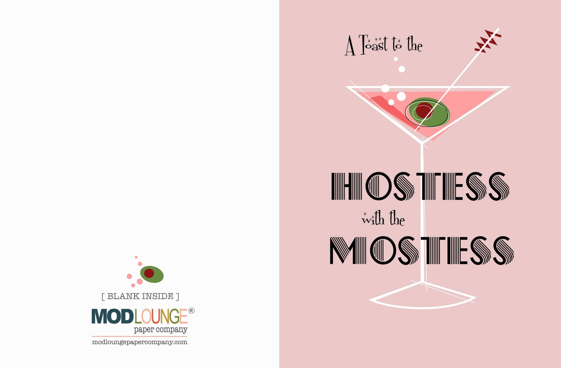 Toast to the Hostess with the Mostess Vintage Martini Card - Mod Lounge Paper Company