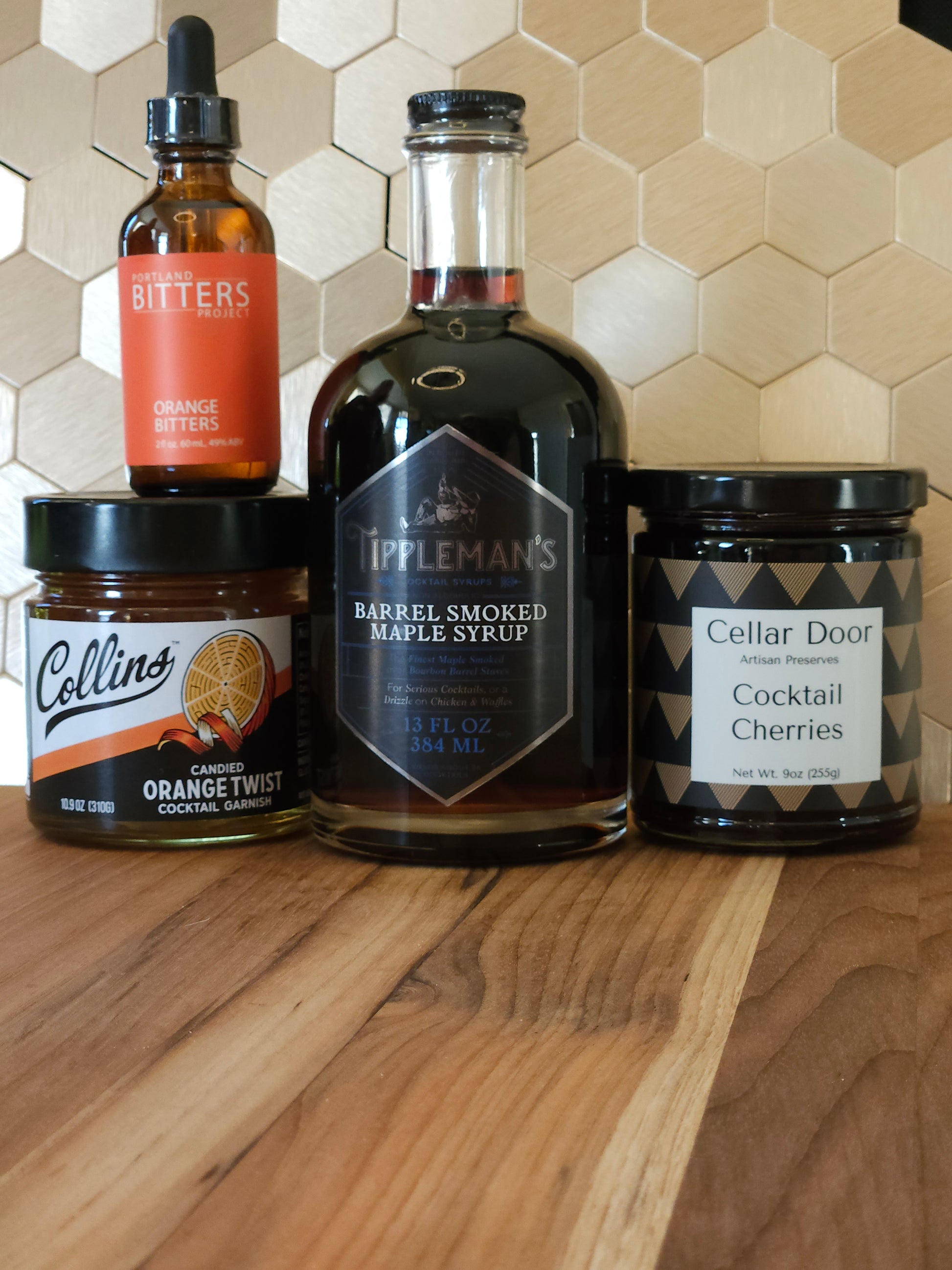 Smokin' Jim - Beverage Kit includes: Smoked Maple Syrup, Orange Bitters, Candied Orange Peel, Cocktail Cherries, and recipes to delight.