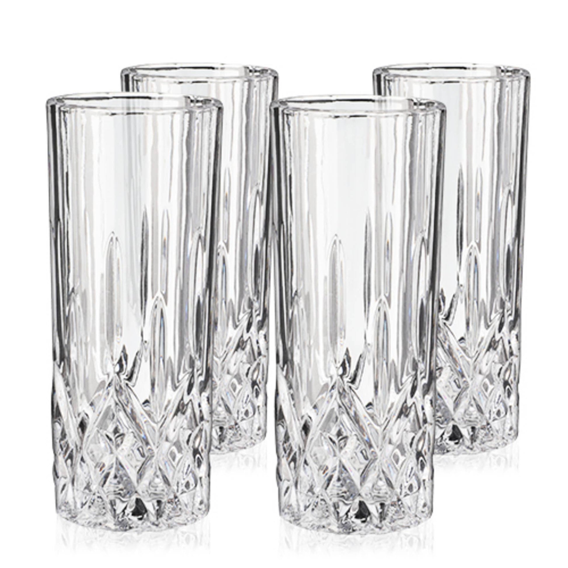Sip a refreshing cocktail from this iconic highball glass. With a tall silhouette, heavy base, and cut-crystal details, this crystal tumbler set brings elegance to any gin & tonic.