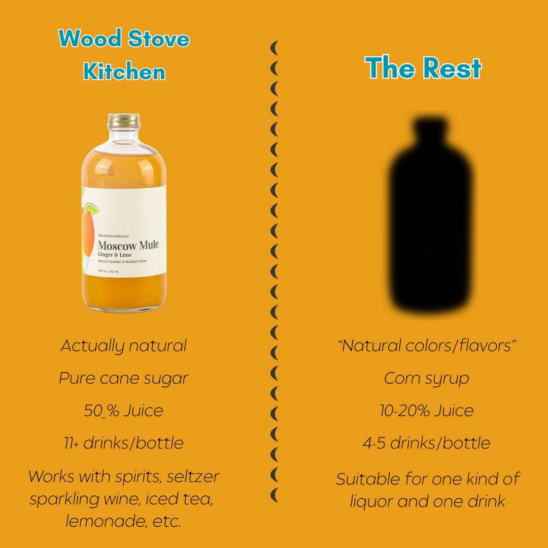Moscow Mule (Ginger & Lime) Natural Cocktail and Mocktail Mixer - Wodd Stove Kitchen - 16 fl oz
